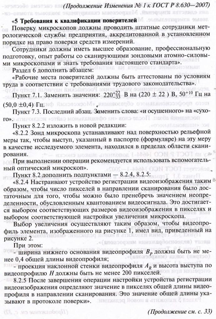 Изменение, внесенное в ГОСТ "Микроскопы сканирующие зондовые атомно-силовые измерительные. Методика поверки"