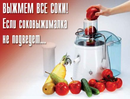 По большому счету, испытания соковыжималок нужно было бы проводить на отжим сока и из твердых плодов (моркови, яблок), и из мягких – винограда, томатов.